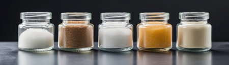 Spoon in sugar on a black background. The concept of addiction to sweets. Macro photo of granulated sugar.
