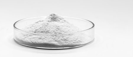 Hydrolyzed Collagen Powder, in the laboratory, pharmaceutical product for use in the food industry, isolated background and copyspace