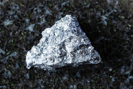 Close-Up of Rare Earth Mineral Flakes on Dark Slate Surface for Scientific Exploration