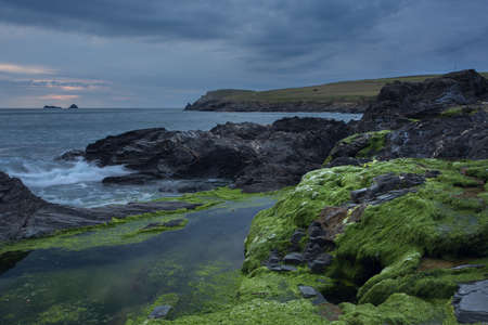 Moody skies at Boobys bay Cornwall uk