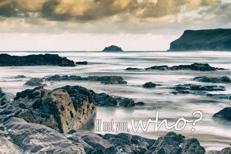 Early morning view of the beach at Polzeath, England Vintage Retro Filter.