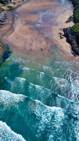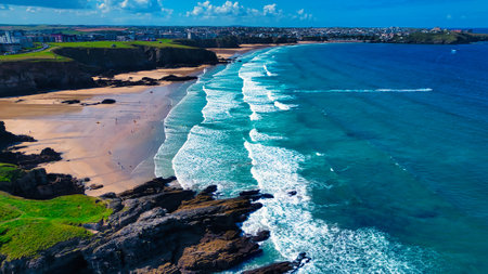 A Typical British Beach View Seen From An Aircraft Of One Of The UK's Coastlines. This location being Newquay on the southern coast.