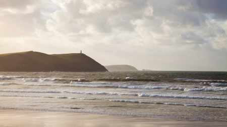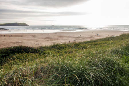 Early morning view over the beach at Polzeath, Cornwall