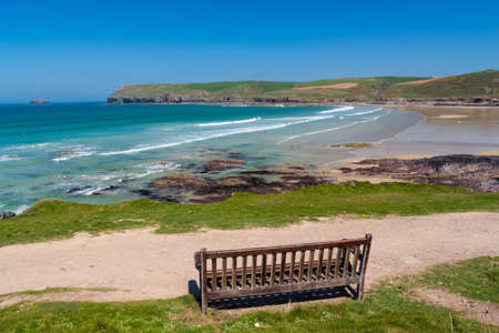 Beautiful sunny day overlooking the beach at Polzeath Cornwall England UK