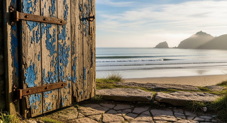 This breathtaking image showcases foamy waves gently rolling up the shoreline, encapsulating the timeless harmony between the oceans movement and tranquil coastal scenery under a bright, open