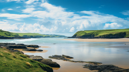 Panoramic vista of serene coastal estuary.
