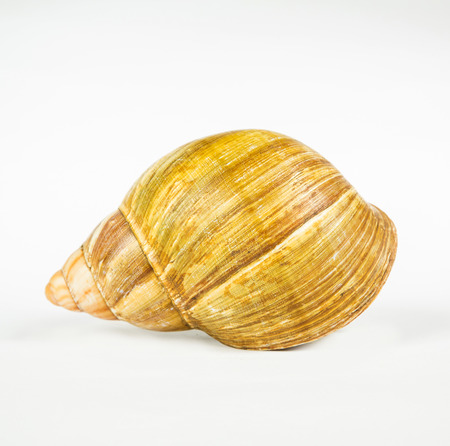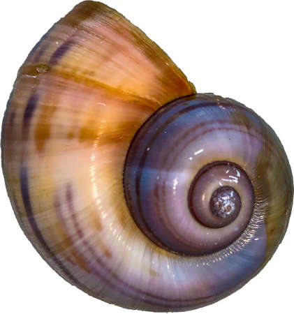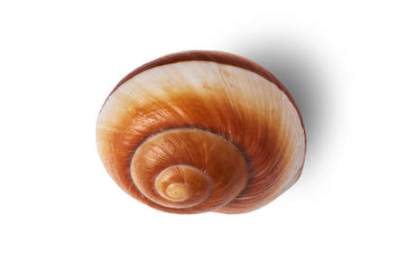 Single Snail with a beautiful shell,nice coloring,close up isolated on the white background