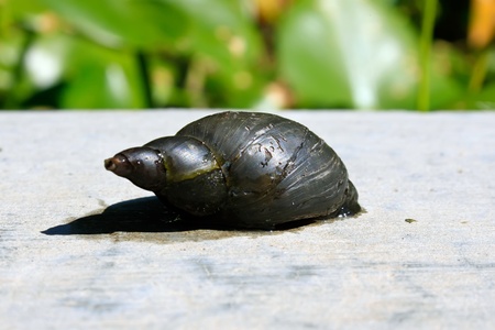 One snail on the natural background, macro view. Big beautiful helix with spiral shell.