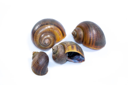 Group of apple snail (Pila ampullacea) isolated on white background. Animal.