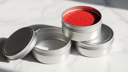Three metal tins with red content