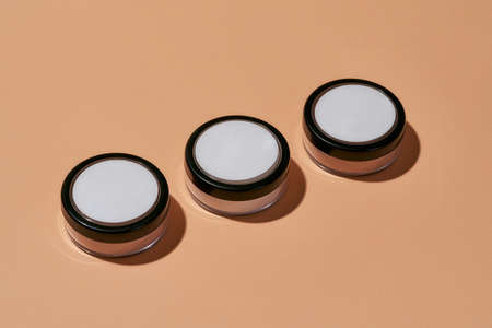 Cosmetological powder in round makeup containers