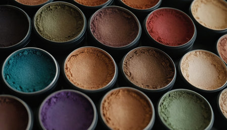 Vibrant colors in a row, crushed particle palette, shiny still life generated by artificial intelligence