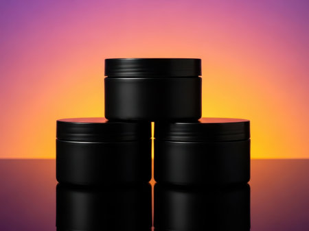Multiple body cream jars lined up diagonally with sunlight casting soft shadows