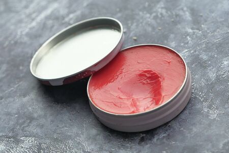 The pomade hair gel in the container isolated on white background.
