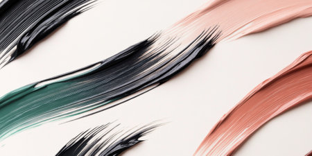 Abstract brush strokes in green, black, pink on white, background, AI generated