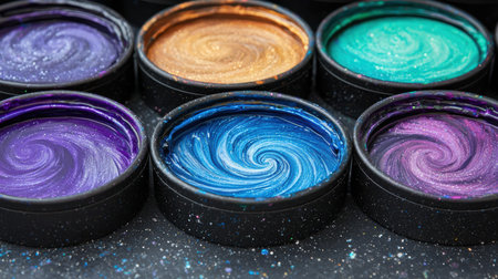 A stunning display of colorful creams in clear containers showcases a vibrant palette for beauty enthusiasts, highlighting various shades ideal for skincare and makeup applications.