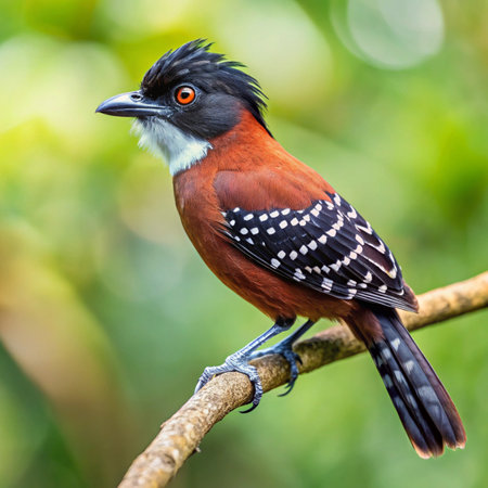 White-crested laughingthrush called Garrulax leucolophus perches in trees and hunts along the ground for food.