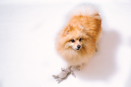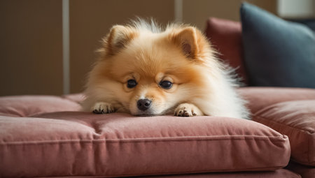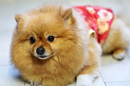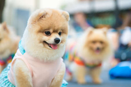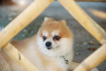 Pomeranian small dog cute pets friendly in home.