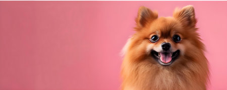 Adorable Pomeranian dog on pink background
