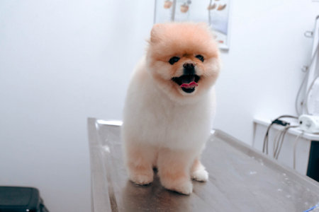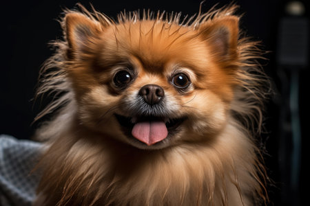 Close-up portrait of a cute pomeranian during grooming, AI Generated illustration