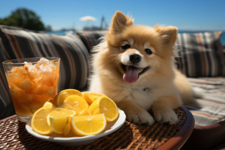 Dog Laid-Back Pomerania Unwinding on Vacation on the beach. Generative AI