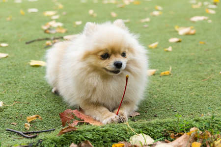 Pomeranian dog standing in the park. Beautiful Pomeranian dog