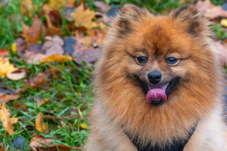 Pomeranian dog on a walk. Dog outdoor. Beautiful dog