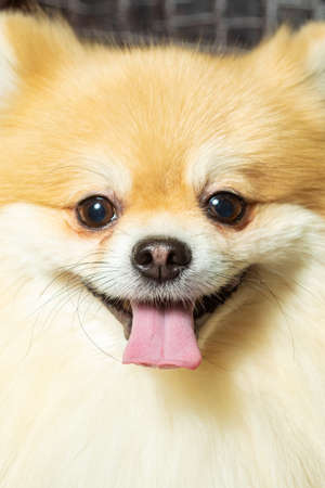 Funny pomeranian dog with happy face. Pomeranian spitz. Pom dog. Cute pets