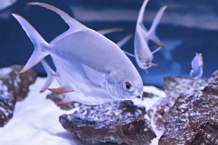 Tropical fish swimming in the aquarium. Underwater world.