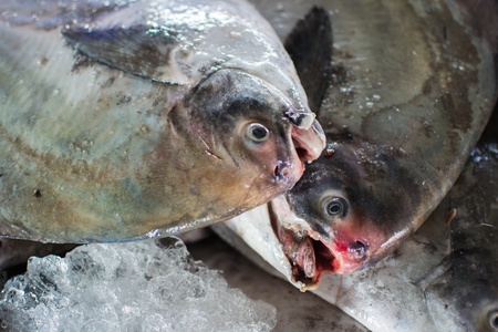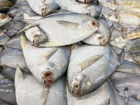 pomfret fish on ice display at fresh market Used for cooking