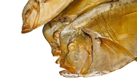 smoked fish close-up on a white isolated background