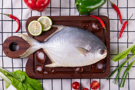 Top view Fresh pomfret fish.