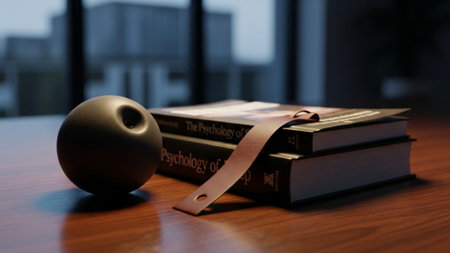 An environmental cinematic wide shot (16:9) capturing the quiet tools of stress management. A deflat
