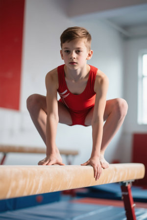 AI Generated. Focused girl embodies determination during gymnastics practice in a gym