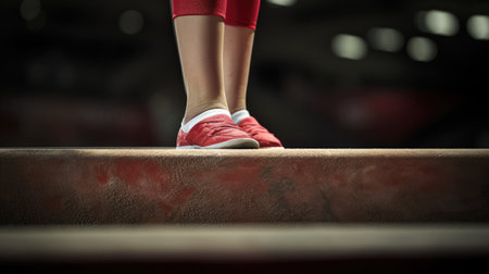 Gymnast s feet on balance beam precision and balance in summer olympic games sport