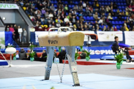 Kyiv. Ukraine-April 1, 2017 : gymnast pommel horse during Stella Zakharova Artistic Gymnastics Ukraine international Cup
