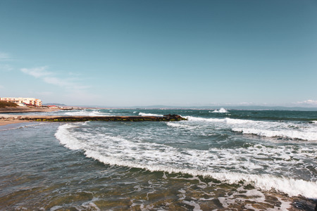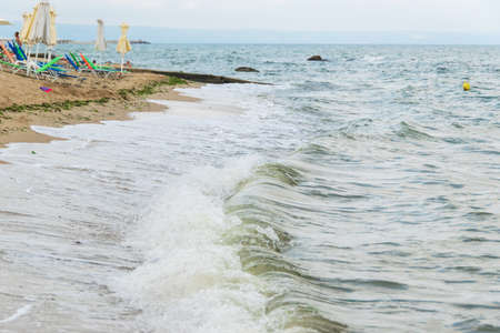 Sea waves on the North Beach in Primorsko, Bulgaria, on the Black Sea coast.