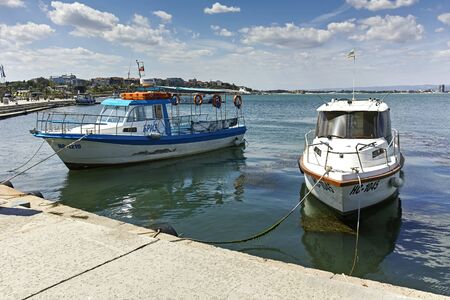 Nesebar, Bulgaria – 07.09.2019. Yacht and pleasure boat parking in Nesebar, Bulgaria, on a sunny summer day