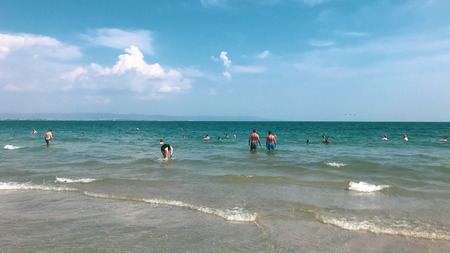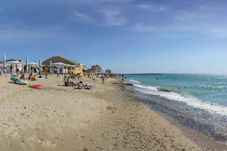 Pomorie, Bulgaria - September 08, 2018: People relaxing on the beach.