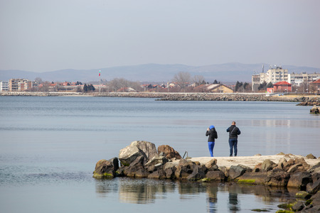 Pomorie, Bulgaria - March 07, 2018: Spring Walk Through The Central Part Of The City.
