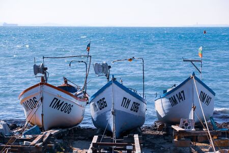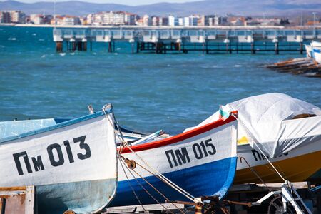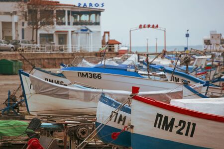 Pomorie, Bulgaria - October 07, 2018: Fishing boats at the city port.