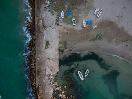 Aerial view of a traditional fisher boats. Bulgaria , Black sea