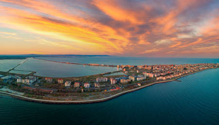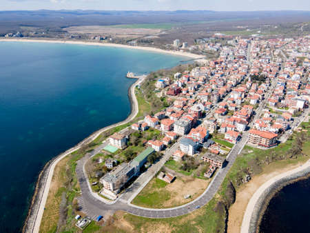 Sunset Aerial view of town of Chernomorets, Burgas Region, Bulgaria
