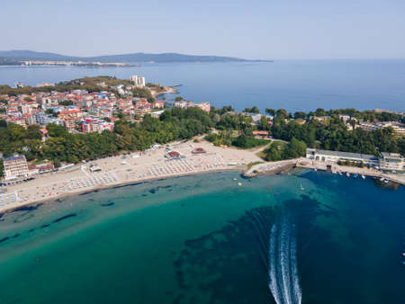 Amazing Aerial view of town of Primorsko, Burgas Region, Bulgaria