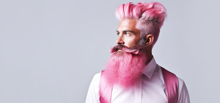 Portrait of a stylish young man with pink hair on a white background