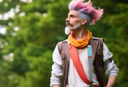 Portrait of a handsome hipster man with colorful hair in the park