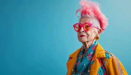 Fashionable trendy grandmother in bright clothes