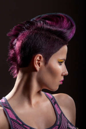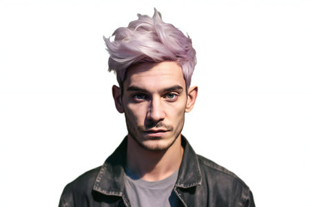 Informal punk man with dyed colored hair
