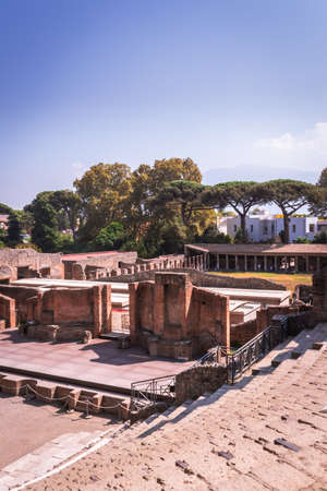 Ancient ruins of Pompei city, Naples, Italy. View of ancient city of Pompeii, Pompei is ancient Roman city destroyed from eruption of Mount Vesuvius in 1st century, Naples, Italy