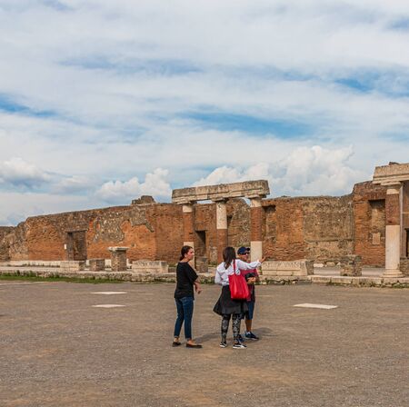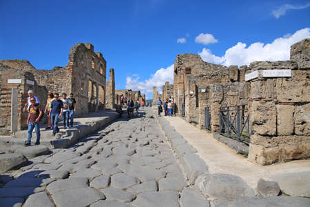 POMPEII, ITALY - September 26, 2017: Pompeii was buried under ash in the eruption of Mount Vesuvius in 79. It's a UNESCO World Heritage Site and one of the most popular tourist attractions in Italy.